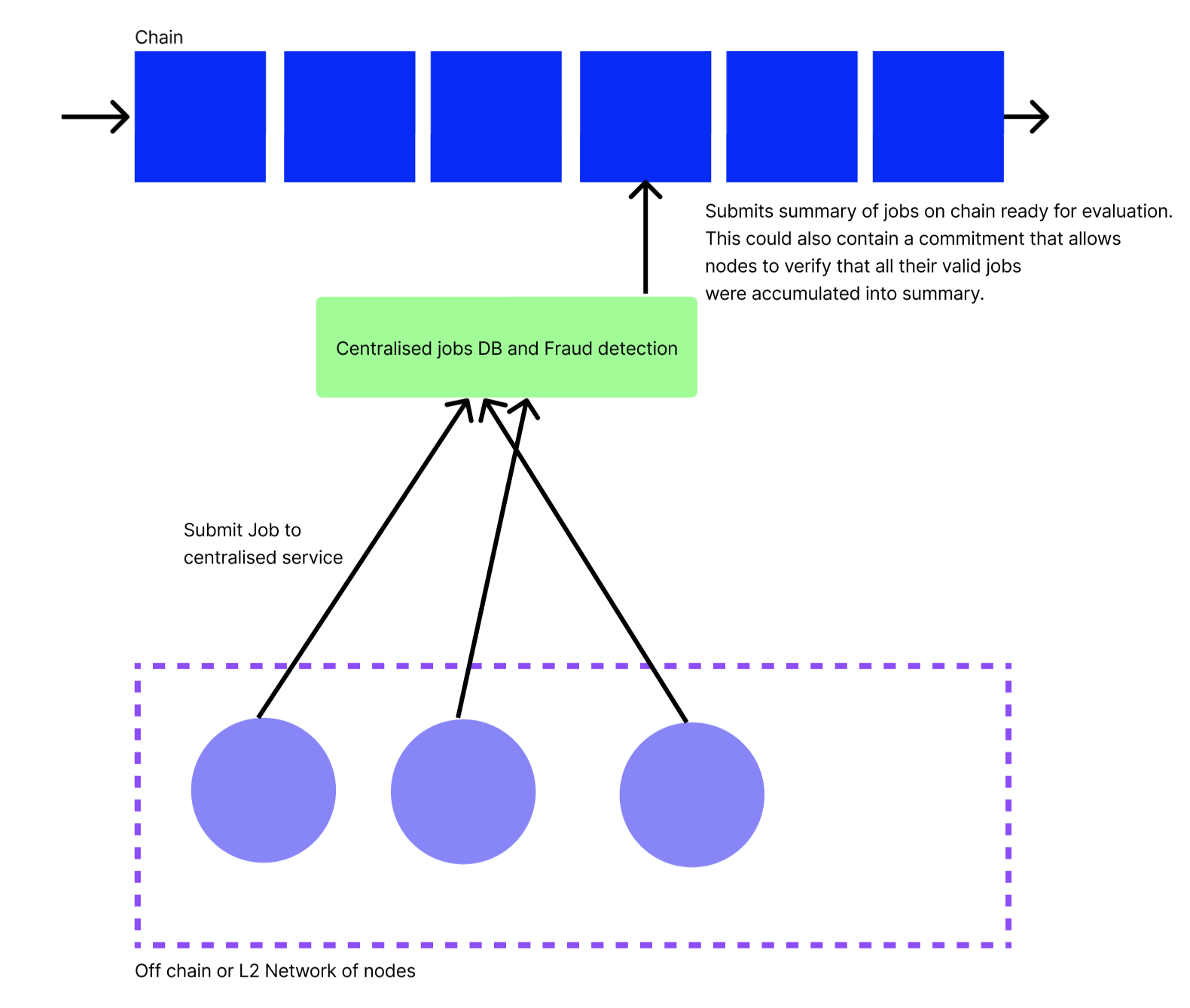- Julian: Focus on the Centralised Orchestrator & Fraud Detection model. Pull this out into a new design doc, leaving this one to act as motivation for why we chose this model. In this new design doc, we describe concretely what the commitment on chain is.