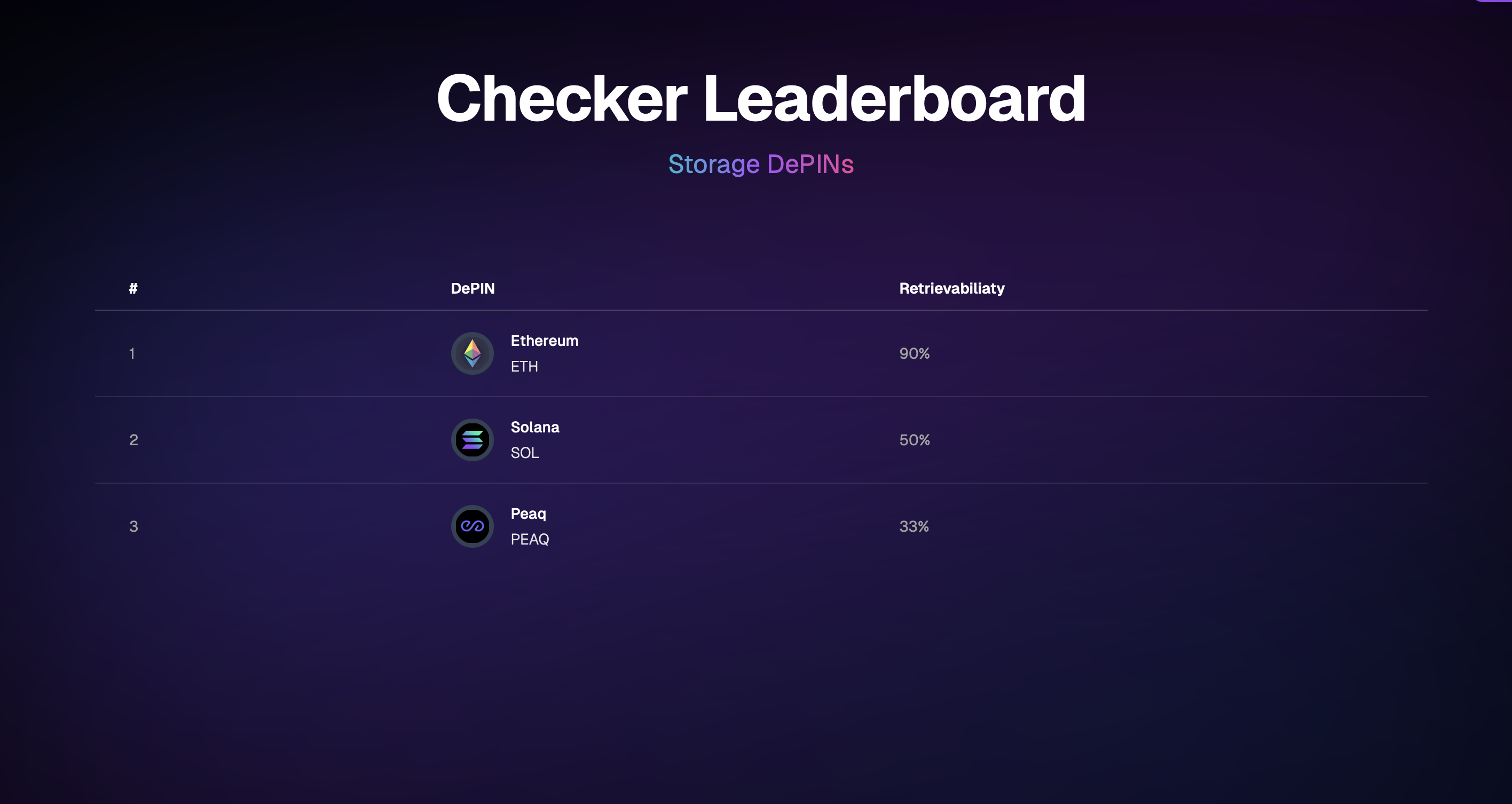 Since Checker initially focuses on Storage DePINs, this document proposes a Storage DePIN leaderboard.