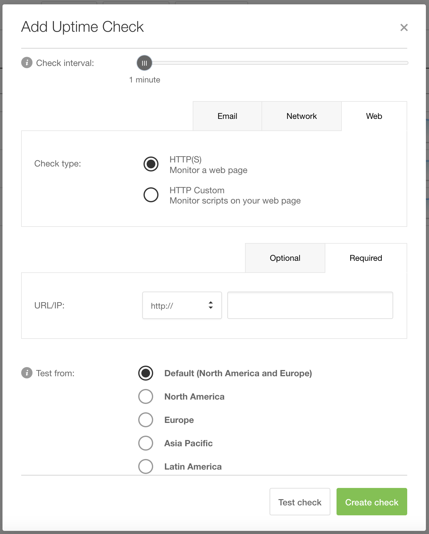 An uptime check input form looks as follows: