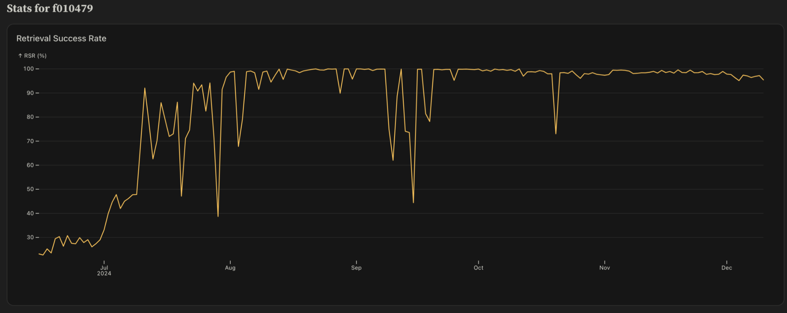 Also if you look at the current top performing SP, their Spark RSR has increased from around 20% to very close to 100% over the last 6 months. Our team actually worked directly with this SP to debug their retrieval related issues. As a prospective client, I would feel much more confident to store with this SP having seen this data.